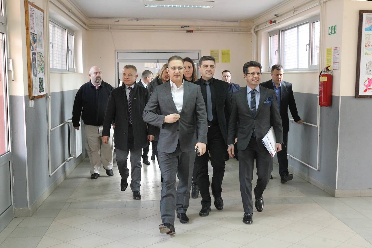 Ambassador Orizio (r), Nebojša Stefanović (l), Deputy Prime Minister and Minister of Internal Affairs, and other officials arriving at the launch of The Basics of Child Safety handbook, Belgrade, 12 February 2018.