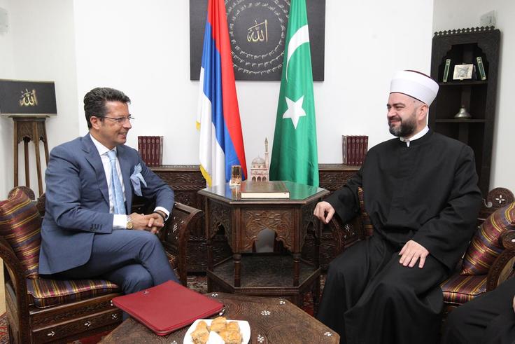 Head the OSCE Mission to Serbia, Andrea Orizio, in an introductory meeting with Reis-ul-Ulema of the Islamic Community of Serbia, Sead Nasufović, Belgrade, 14 May 2018.