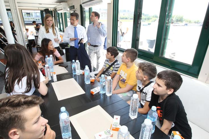Ambassador Andrea Orizio, the Head of the OSCE Mission to Serbia, discusses students’ impressions: for some of them it is the first visit to Belgrade, for many more the first time ever on a boat, Belgrade, 26 June 2019.