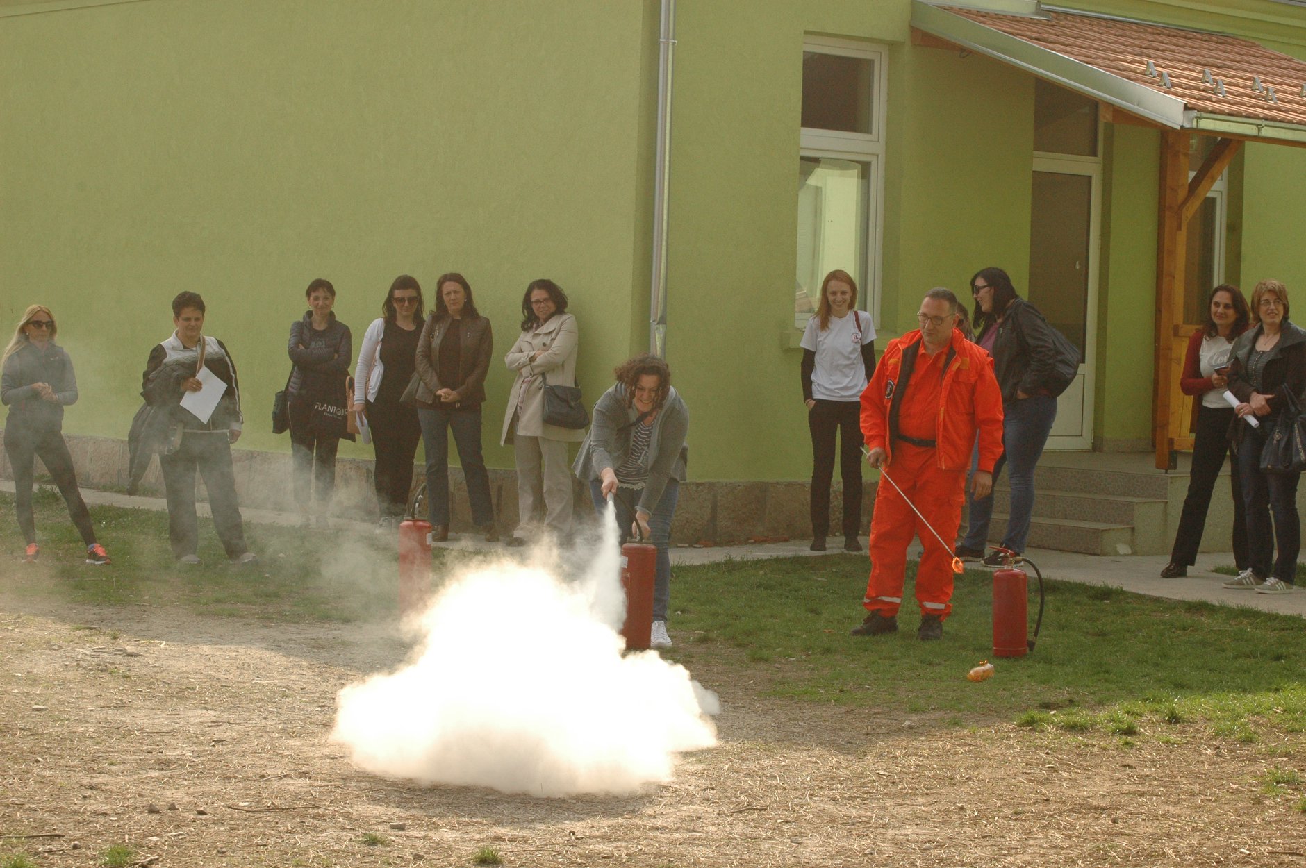 Fire drill in Kraljevo- supported Disaster Risk Reduction training course for women, organized by CSO Phenomena, Kraljevo, March 2019.