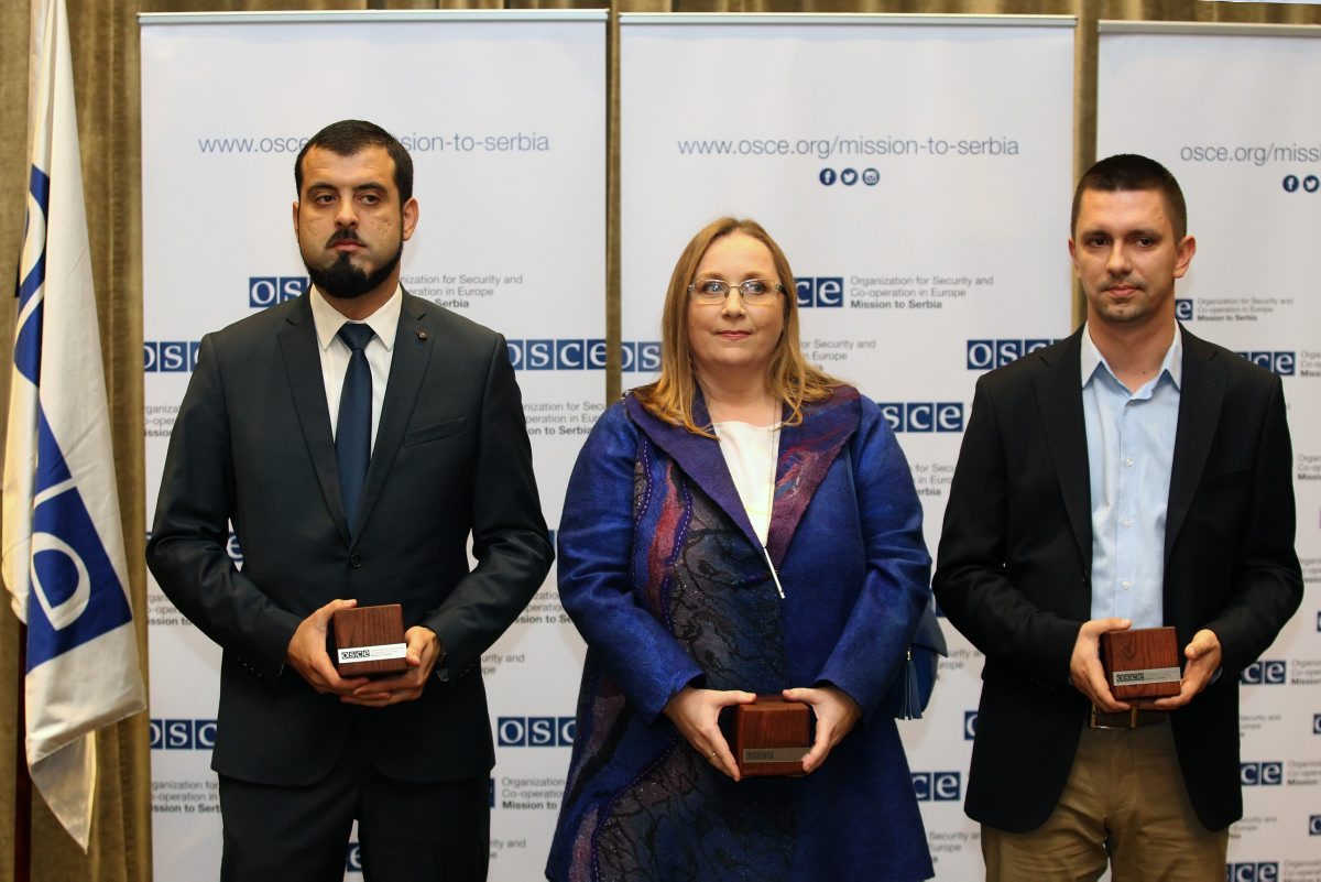 Winners of the 2019 OSCE Mission to Serbia Person of the Year award: Aleksandar Ivanović, Bojan Cvejić and Sonja Stojanovic Gajić.