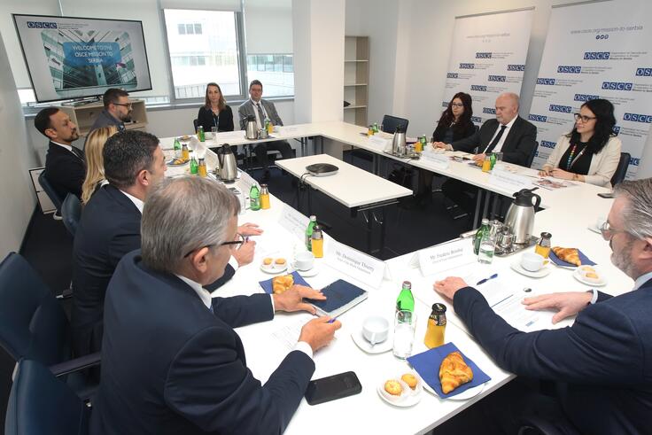 The OSCE Mission to Serbia’s senior management presents an overview of the Mission’s work to the OSCE Secretary General Feridun H. Sinirlioğlu during his visit to Belgrade on April 2, 2025.
