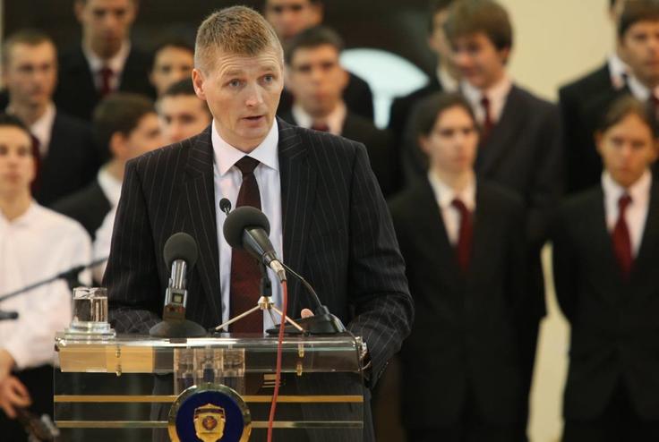 Tor Tanke Holm, Head of the Mission to Serbia's Law Enforcement Department, speaks at the graduation ceremony at the Police Training Centre in Sremska Kamenica. The OSCE Mission works closely with the Serbian Ministry of Interior on policing reform.