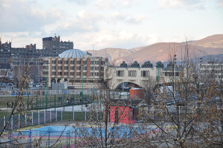 The Recreational Centre building (left) and the Vrbak Hotel in the centre of Novi Pazar, 14 March 2009.
