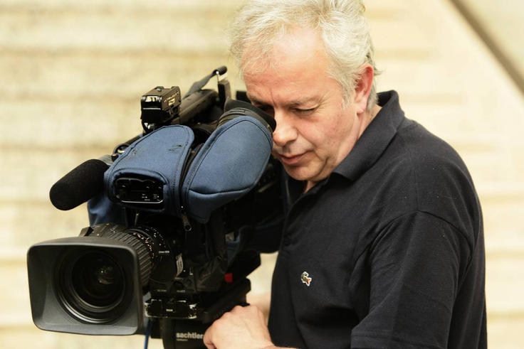 A cameraman covers an OSCE Mission to Serbia media briefing in Belgrade, 11 May 2009.