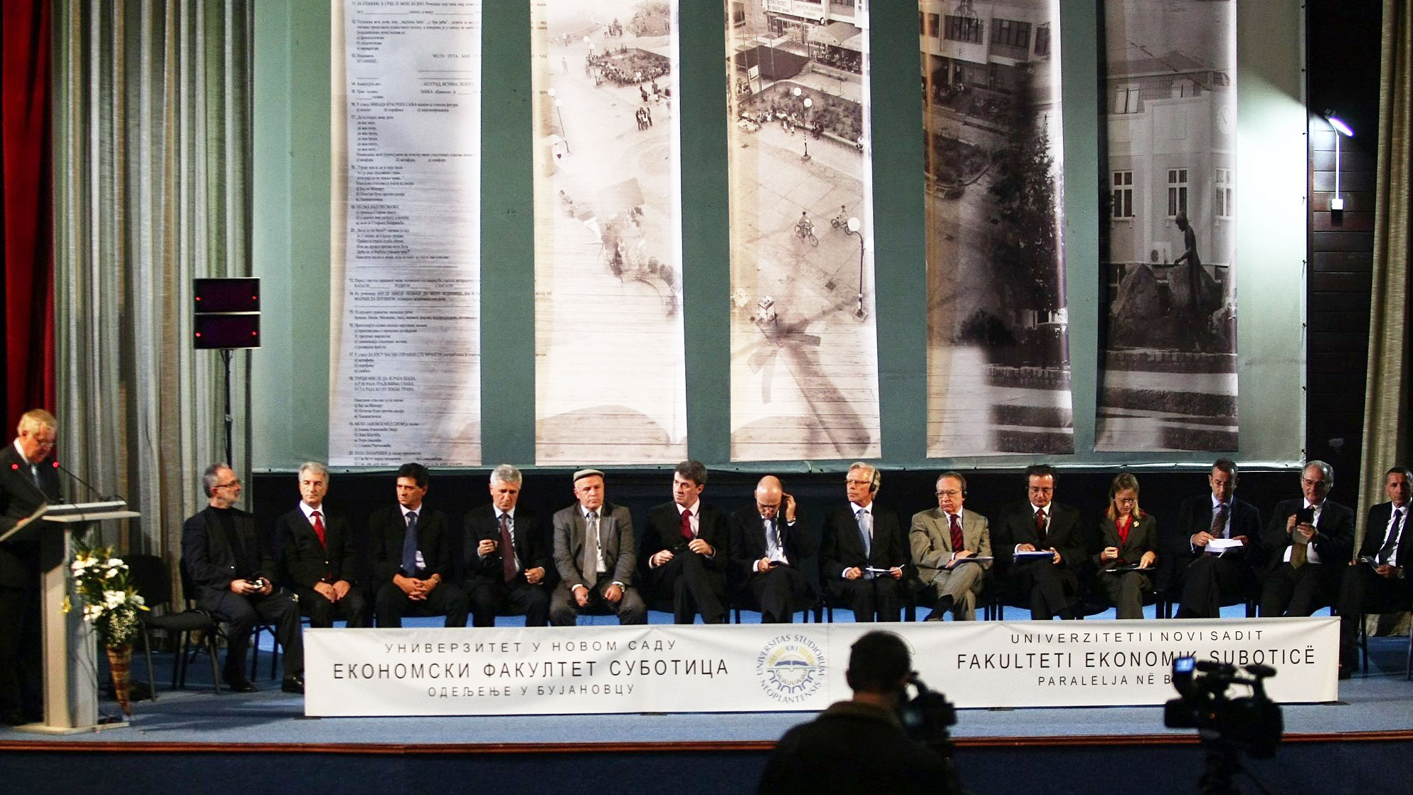 OSCE High Commissioner on National Minorities Knut Vollebaek visits the new university department of economics in Bujanovac, southern Serbia.