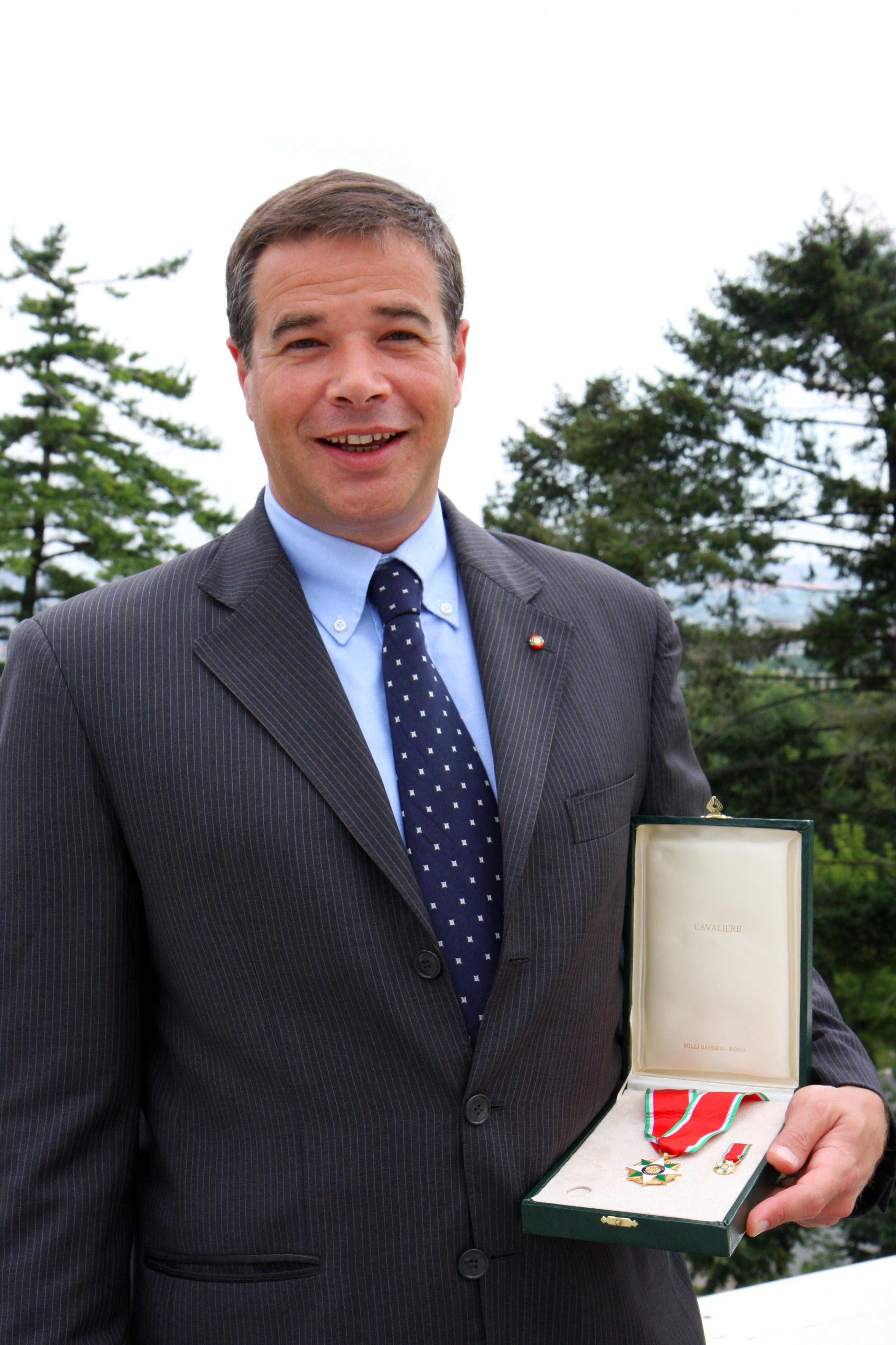 Stefano Donati, the OSCE Mission to Serbia's Economic Transparency Advisor, displays the Order of the Star of Italian Solidarity, awarded in recognition of his contribution to fighting corruption and economic crime, Belgrade, 8 July 2009.