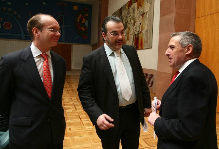 L-R: Thomas Moore, Acting Head of OSCE Mission to Serbia, Svetozar Ciplic, Minister of Human and Minority Rights, and Josep Lloveras, Head of the European Commission Delegation to Serbia, at a conference on Roma education issues, Belgrade, 17 July 2009.