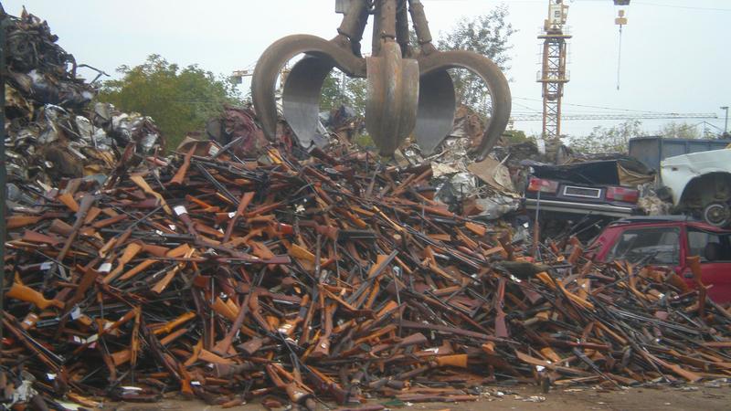 Weapons are loaded into a shredder during the destruction of 17,000 surplus and confiscated weapons at the Recycling Center in the Belgrade suburb of Zeleznik, 3 October 2009.