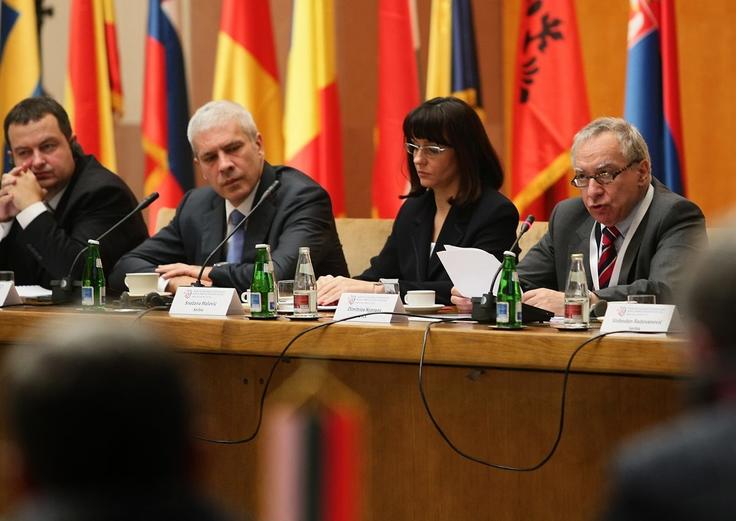 Ivica Dacic, Serbian Interior Minister, Boris Tadic, President of Serbia, Snezana Malovic, Serbian Justice Minister and Dimitrios Kypreos, Head the OSCE Mission to Serbia (l-r) at the regional conference on organized crime, Belgrade, 28 September 2009
