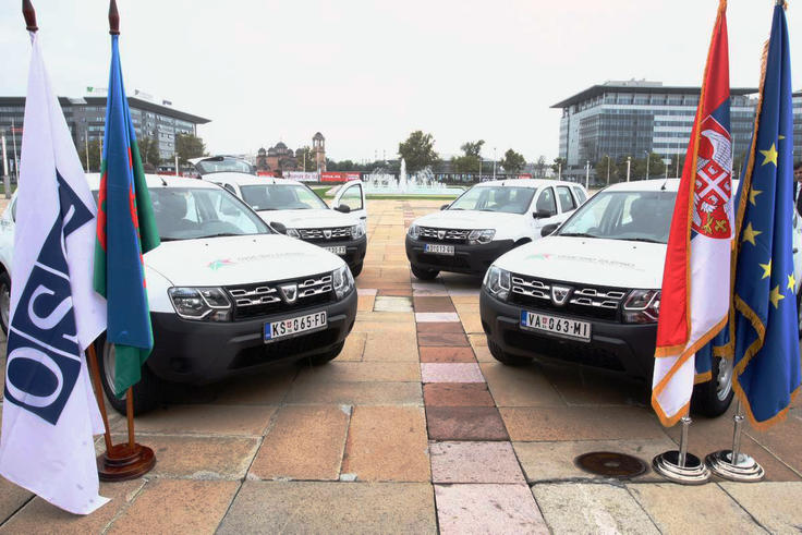 Dacia Duster vehicles for the work of Mobile teams for Roma inclusion donated to pilot municipalities working with the project We Are Here Together - European Support for Roma Inclusion, Belgrade, 16 September 2014.