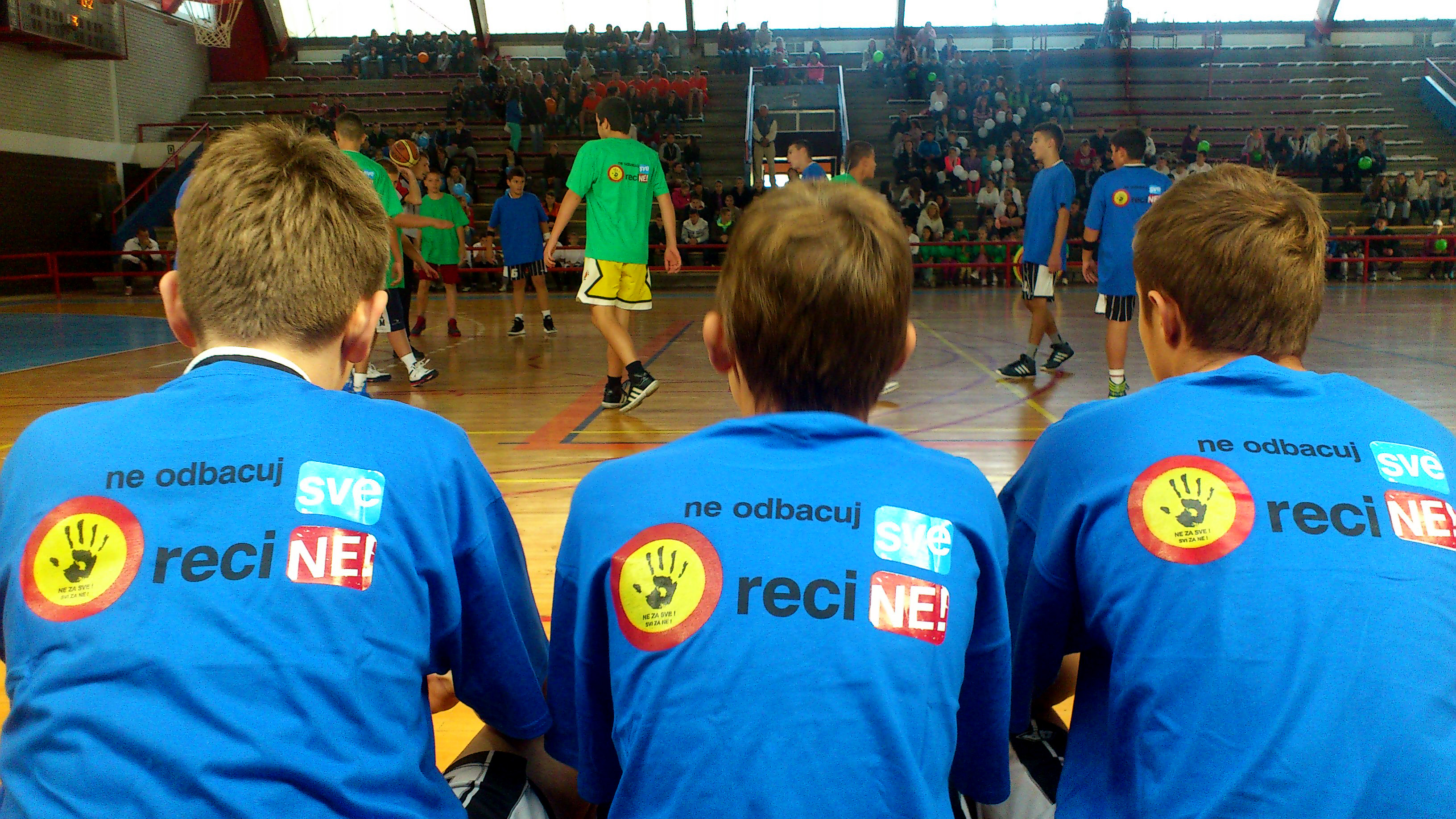 Young people from secondary schools in Sombor attending a basketball competition organized by Sombor Police Directorate promoting positive sports behaviour, Sombor, Serbia, 5 October 2014.