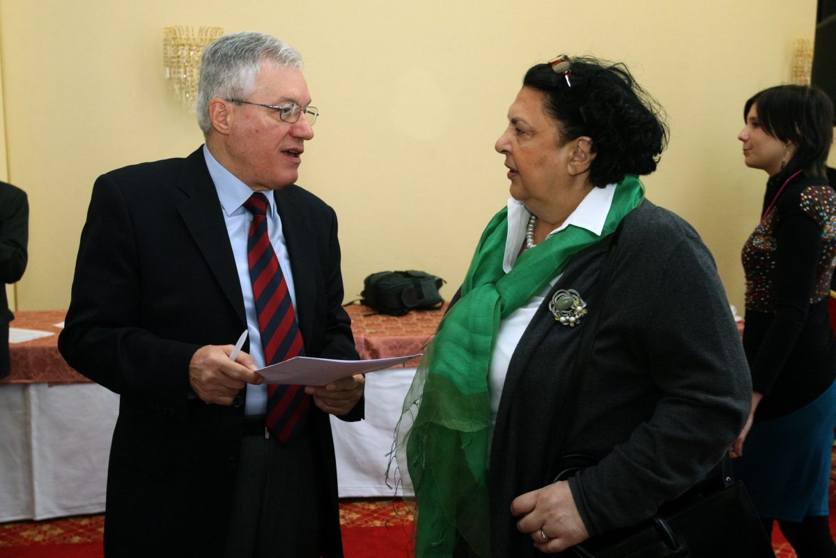 (L-r) Professor Rade Veljanovski and Irini Reljin, Assistant Minister of Trade, Tourism and Telecommunications, during consultations on the implementation of new media laws, Arandjelovac, 28 November 2014.