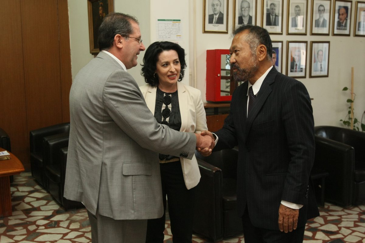 During his first visit to east Serbia the Deputy Head of the OSCE Mission, Michael Uyehara, arrives to a meeting with Mayor of Bor, Živorad Petrović (l) Bor, 9 September 2015.
