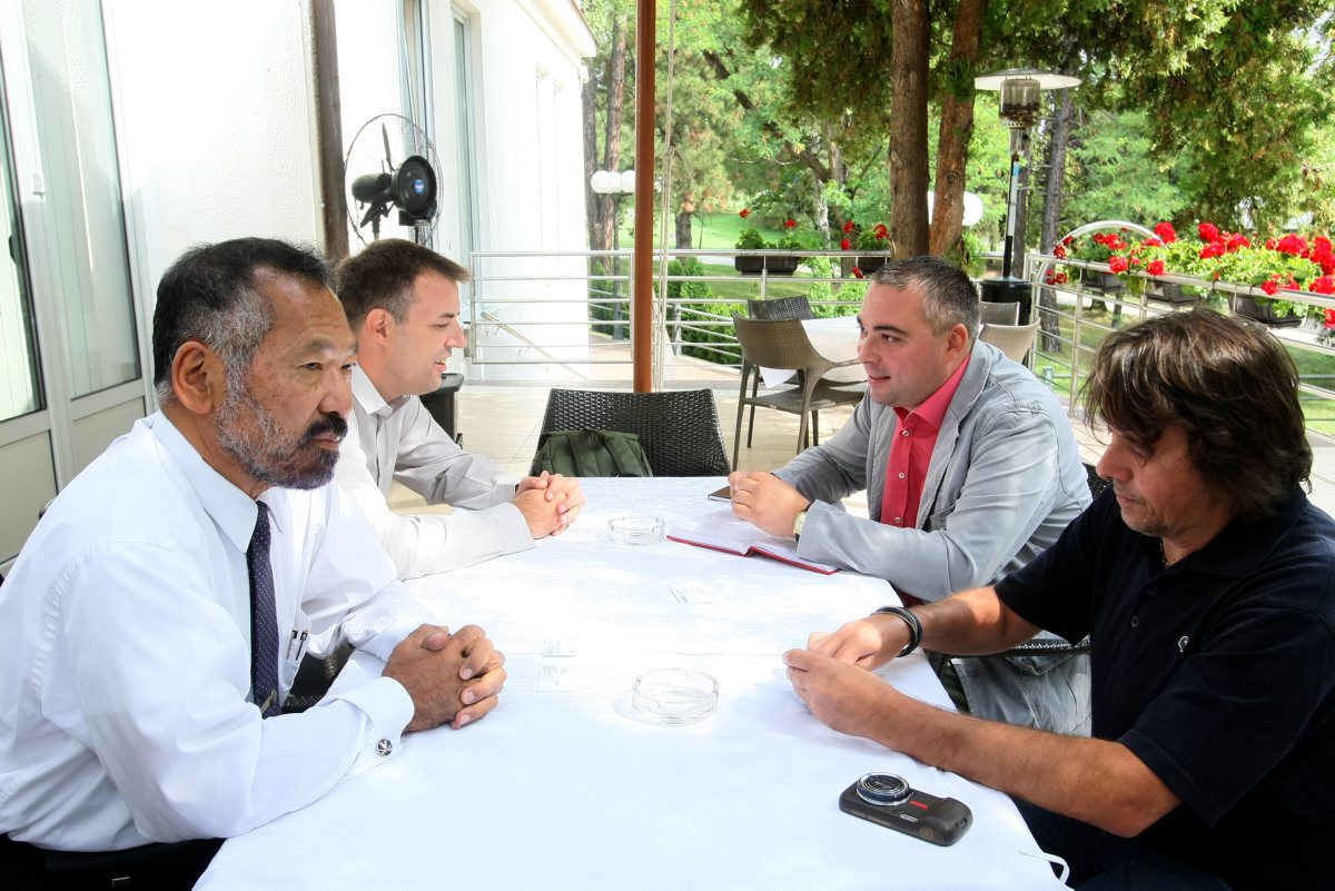 Delegation of the OSCE Mission to Serbia, discussing challenges the media are facing in Bor, with Radio Television Bor Director, Vladan Novović and Ist Media Press Center Director, Saša Trifunović, Bor, 10 September 2015.