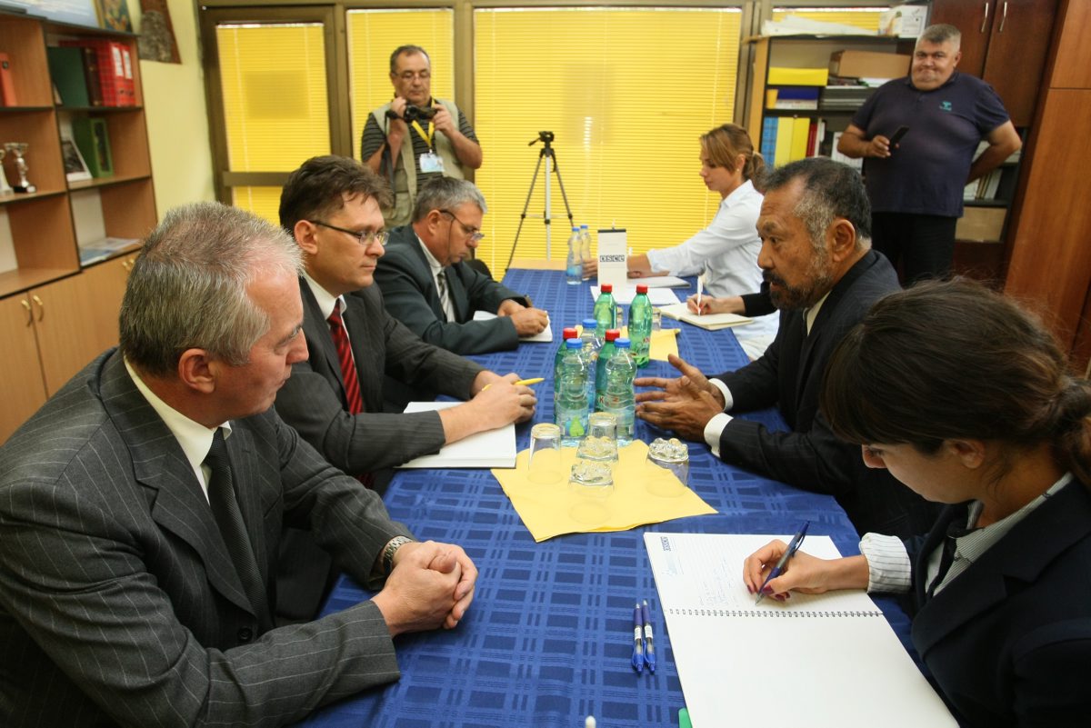 Deputy Head of the OSCE Mission to Serbia, Michael Uyehara, talking to the Vlach national minority representatives, Bor, 9 September 2015.