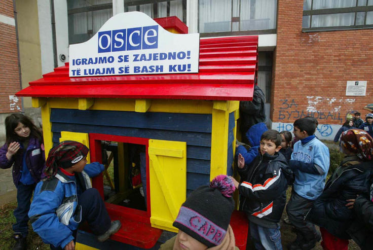 OSCE Mission to Serbia and Montenegro sponsored playgrounds for Serbian and Albanian children in southern Serbia, 30 January 2003.
