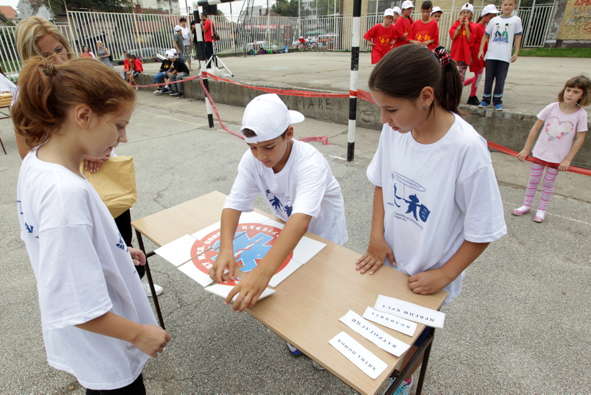 The Kragujevac team completing a task during a game on traffic rules and emergency service emblems, Kragujevac, 10 September 2016.
