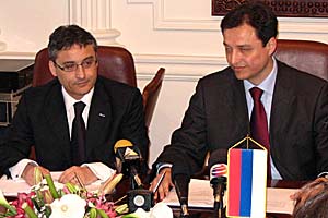 Head of the OSCE Mission to Serbia and Montenegro, Maurizio Massari (left), together with the Mayor of Nis, Goran Ciric, 7 May 2004.