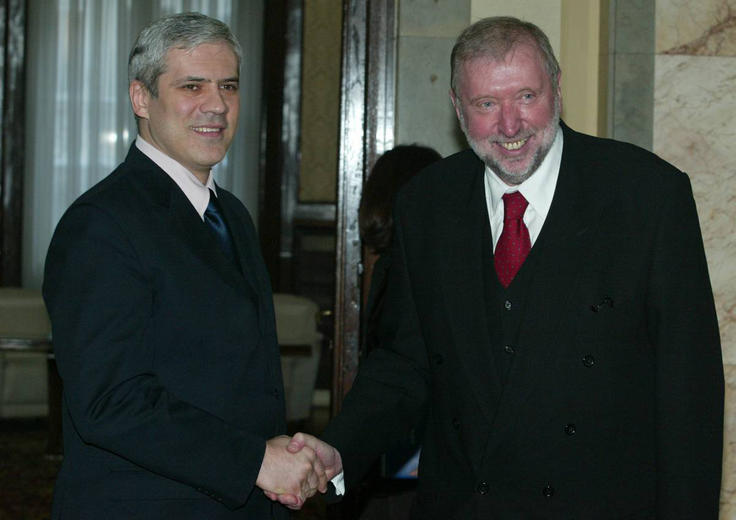 OSCE Chairman-in-Office and Slovenian Foreign Minister Dimitrij Rupel (right) met with President of Serbia Boris Tadic during a visit to Belgrade, 7 February 2005