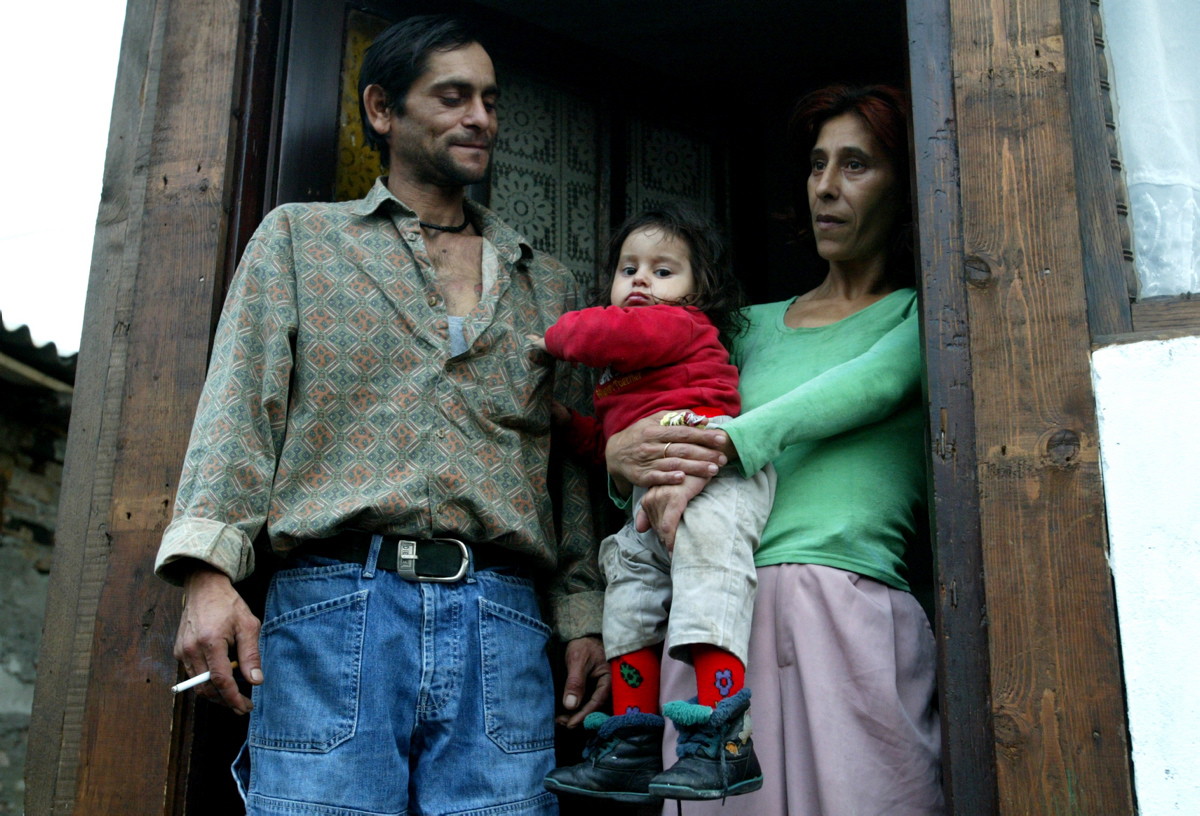 A family at one of Valjevo's Roma settlements in Western Serbia, 22 November 2006. Roma are often forced to live in poor, unhygienic conditions in Serbia's informal settlements.