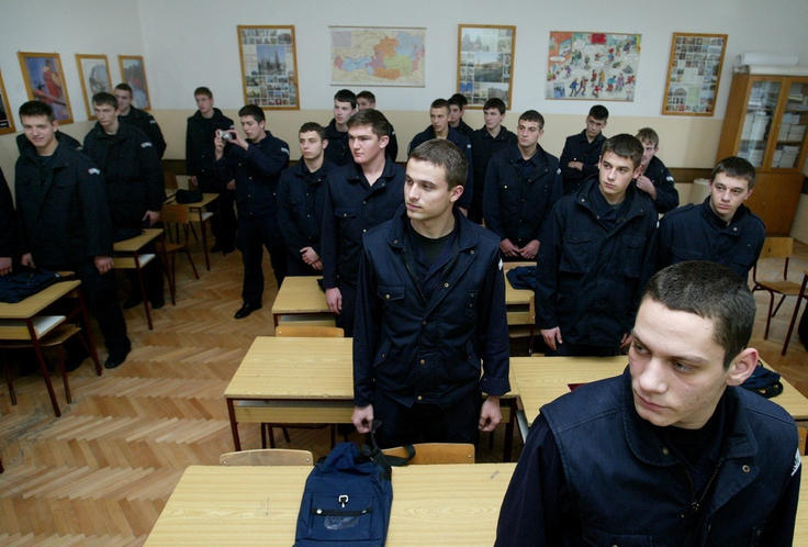 Some of the last students enrolled in the four-year programme at the Police High School in Sremska Kamenica, Serbia, as it undergoes a transformation into a basic police training centre for post-secondary cadets for autumn 2007. Photo taken November 2006.