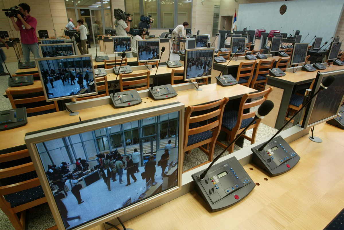Courtroom No. 1 is housed in Belgrade's District Court where a special department was established in 2003 to hear cases relating to war crimes and organized crime.