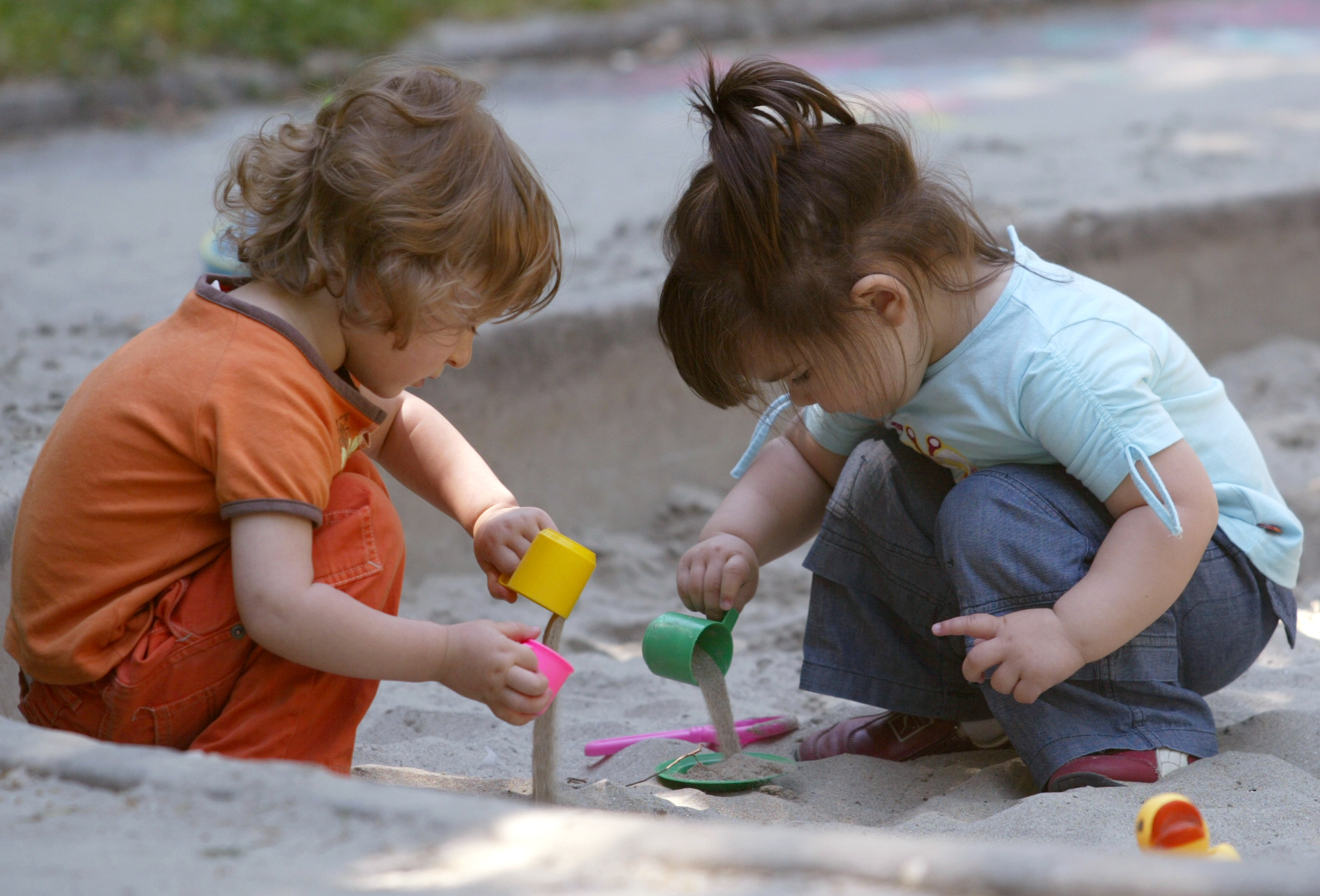 Children playing in a sandbox in a park in central Belgrade in the summer of 2006.