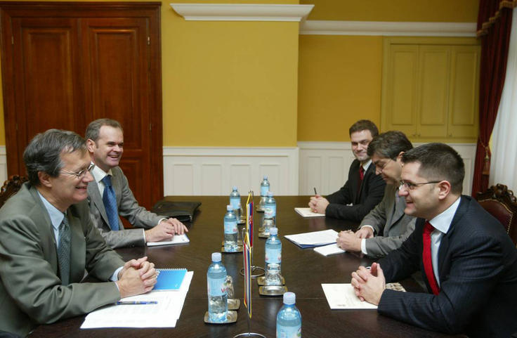 OSCE Secretary General Marc Perrin de Brichambaut (left) with Serbian Foreign Minister Vuk Jeremic (right) during his visit to Belgrade, 10 October 2007.