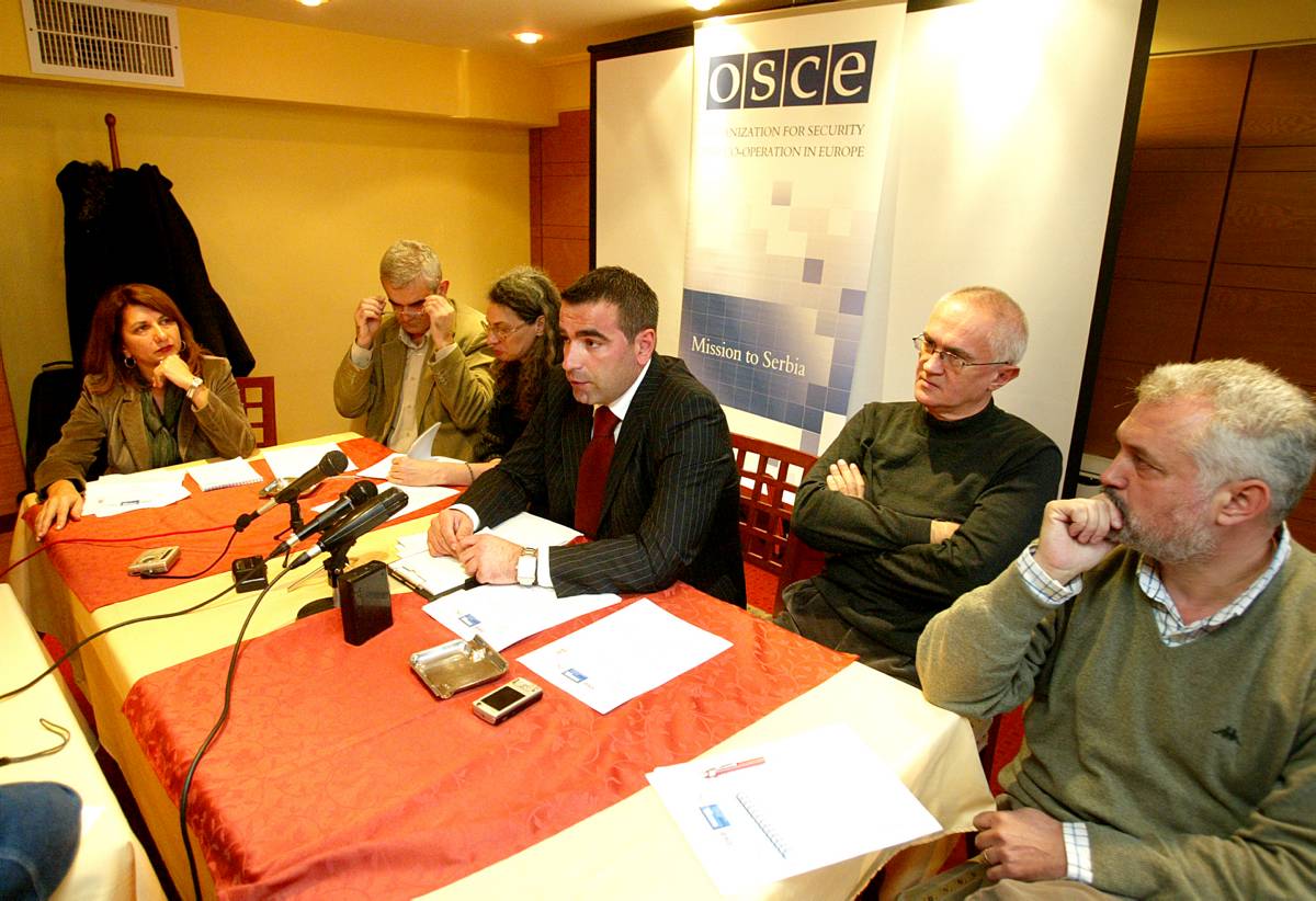 (R-L:) Novi Pazar Information Bureau Head Fikret Niksic, Independent Association of Serbian Journalists' Jelka Jovanovic, Assistant Media Minister Dragan Janjic, and the Mission's Media Department Head Dragana Nikolic Solomon, Novi Pazar, 1 November 2007