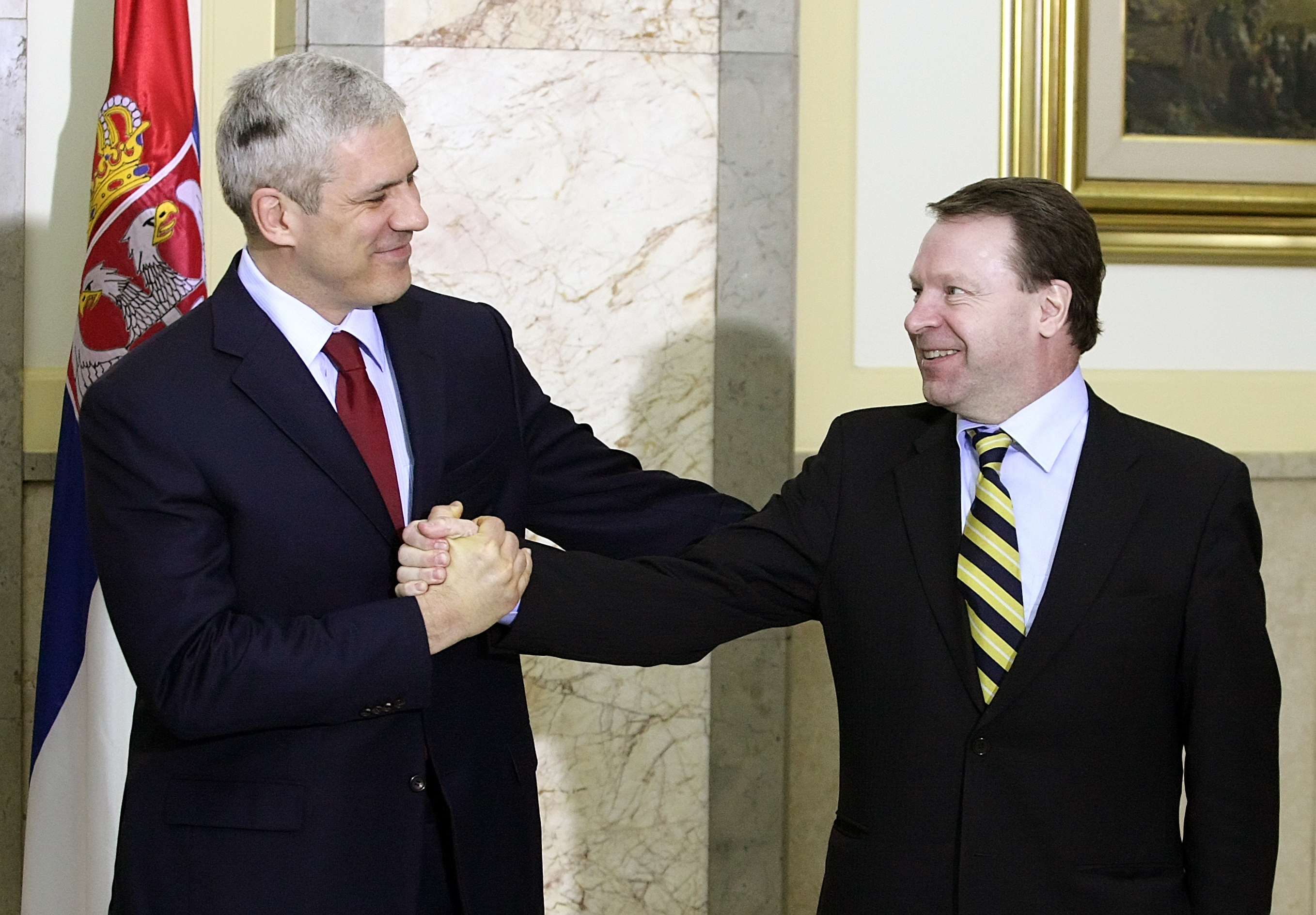 OSCE Chairman Ilkka Kanerva (Right) after talks with Serbian President Boris Tadic, in Belgrade, 5 February 2008.