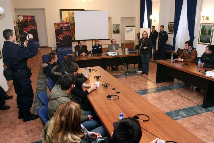 Some 50 ethnic Albanian young men and women interested in joining the police service learn about a career in the police, and the Basic Police Training Centre's application process and training programme, Sremska Kamenica, 25 November 2011. Their visit was organized by the OSCE Mission to Serbia with support from the German government.