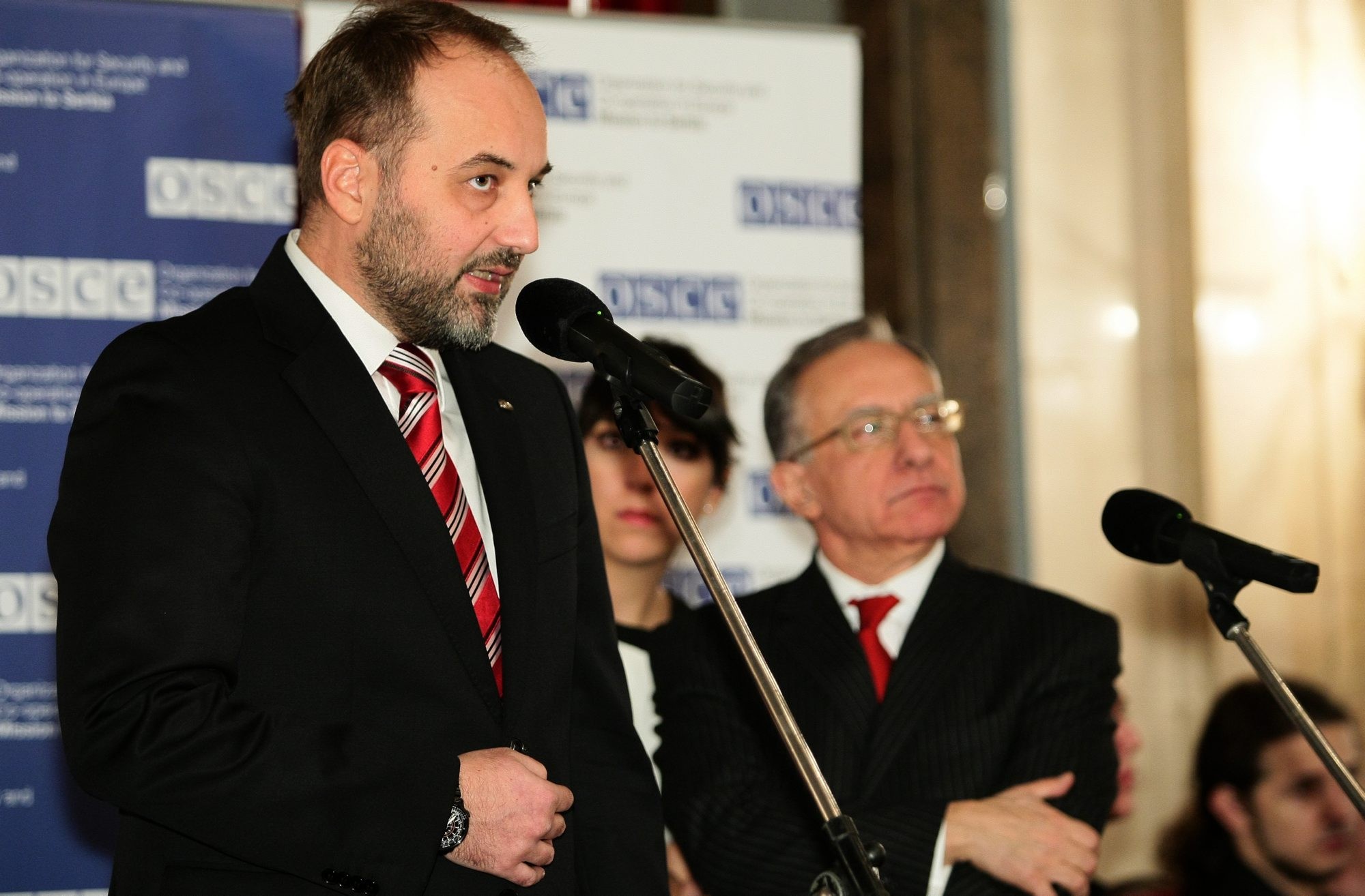 Saša Janković, the Protector of Citizens, one of the three winners of the 2011 OSCE Mission to Serbia Person of the Year Award, during the award ceremony in Belgrade, 14 December 2011. Jankovic was awarded for his efforts in protecting citizens’ rights and investigating maladministration by public authorities and institutions.