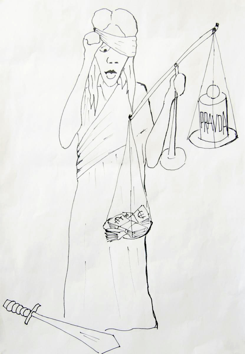 Zarko Velickovic won the best cartoon prize in a Mission to Serbia-supported anti-corruption art competition for this effort, which targets the justice system.
