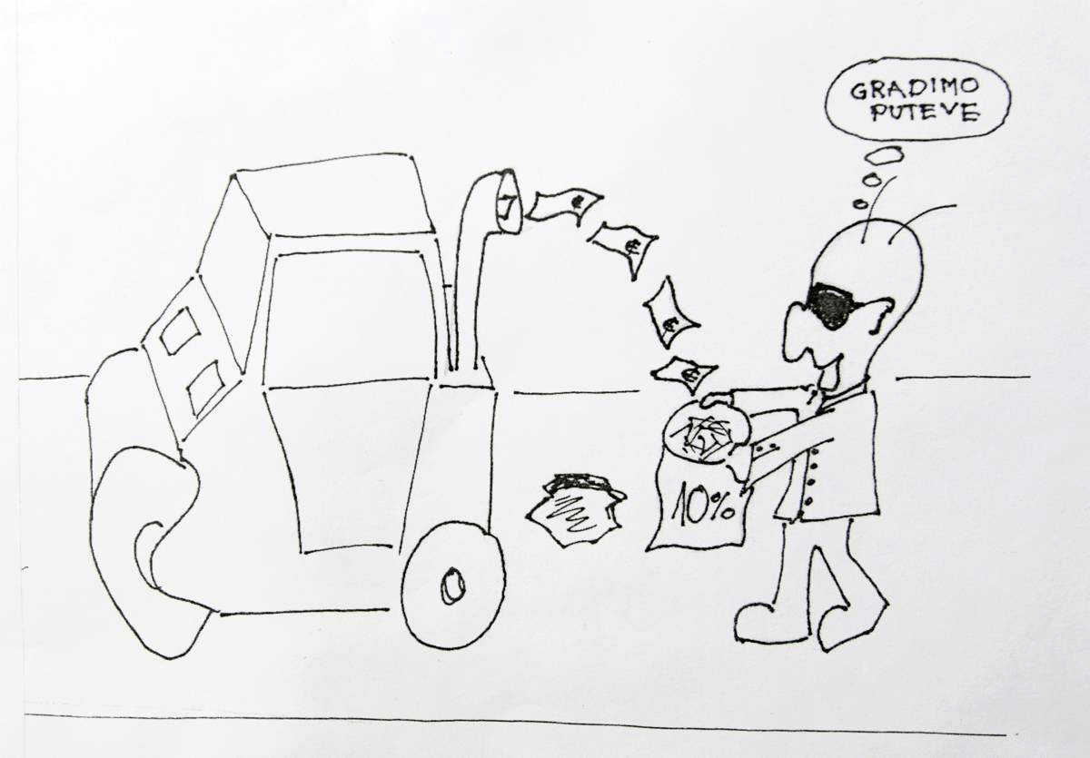 "We are building roads" reads this entry in a Mission to Serbia-supported anti-corruption art competition, which targets corruption in construction projects.