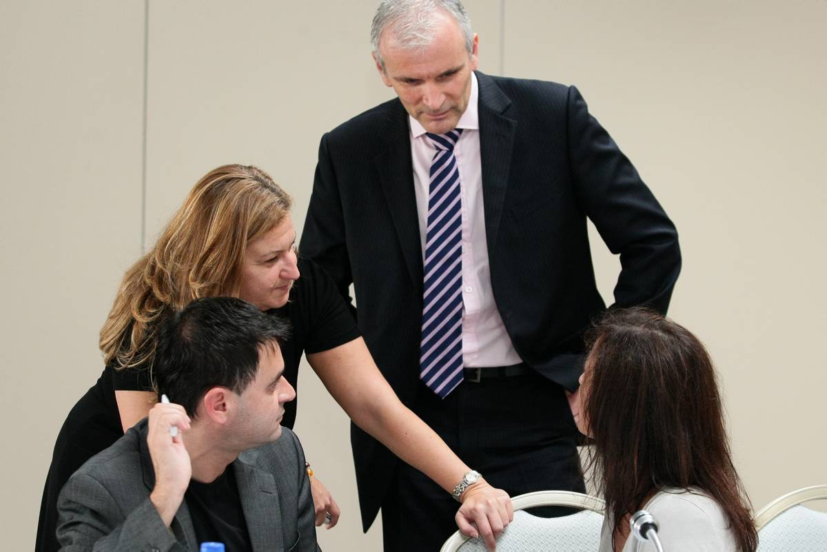 L-r: Marina Markov, OSCE Mission to Serbia Project Assistant; Milos Jankovic of the Serbian Interior Ministry's Financial Investigation Unit; Detective Superintendent Paul Bernard, City of London Police and Emilija Glisovic of the Serbian Interior Ministry’s Financial Investigation Unit, at a presentation on co-operation among the public and private sectors by the City of London Police, organized by OSCE Mission to Serbia, Belgrade, 2 October 2012.