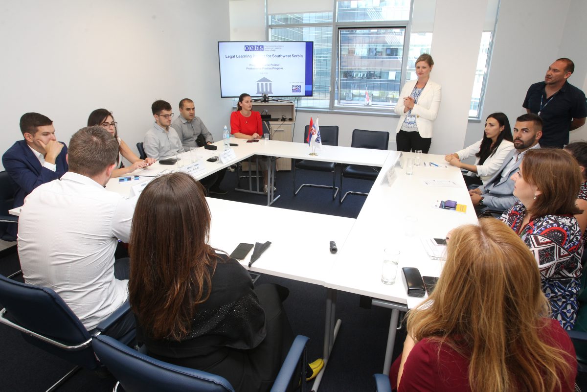 Petoro mladih učesnika/ca iz Novog Pazara i Raške sa svojim mentorima/mentorkinjama iz institucija Republike Srbije u poseti Misiji OEBS-a, uoči početka Programa stručne prakse koji sprovodi Misija OEBS-a sa ciljem da unapredi znanja i veštine mladih stručnjaka iz jugozapadne Srbije, Beograd, 16. septembar 2019. godine