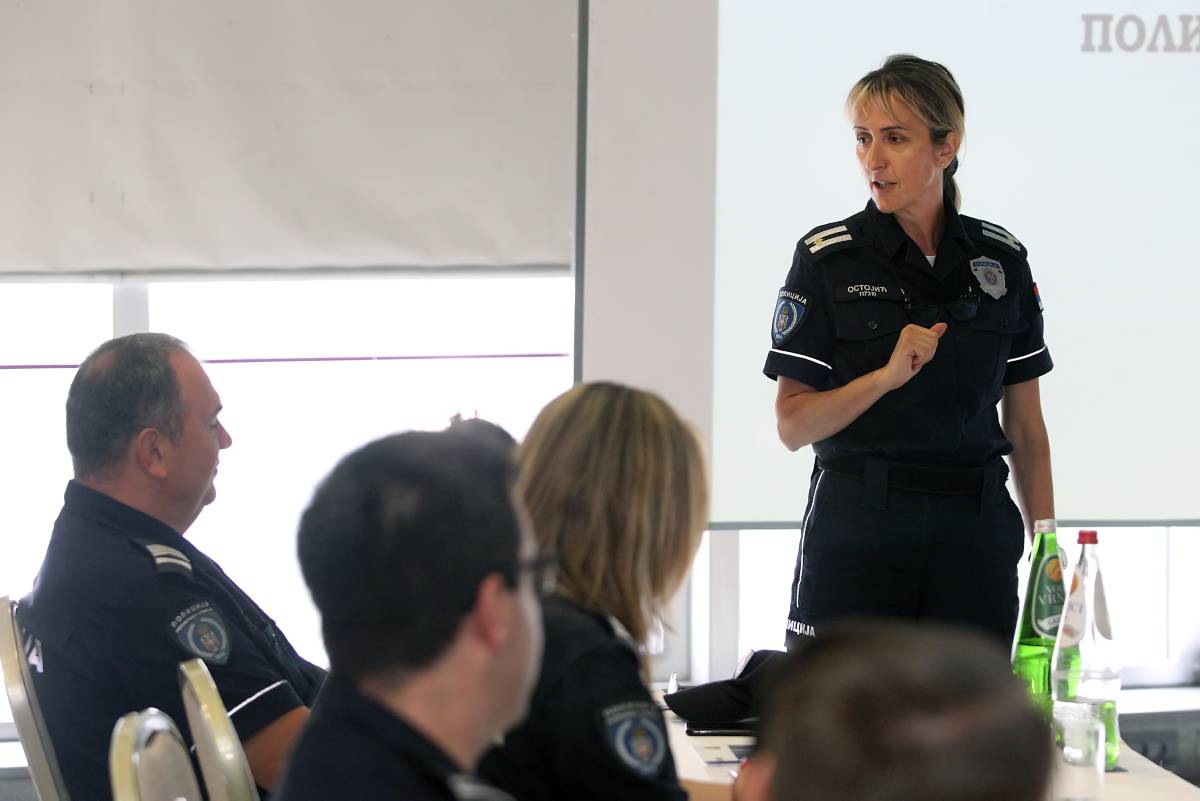Policijski službenici/ce, učesnici/ce obuke koju je podržala Misija OEBS-a u Srbiji, razgovaraju o unapređenju bezbednosti u školama, Beograd, 30. avgust 2024. godine